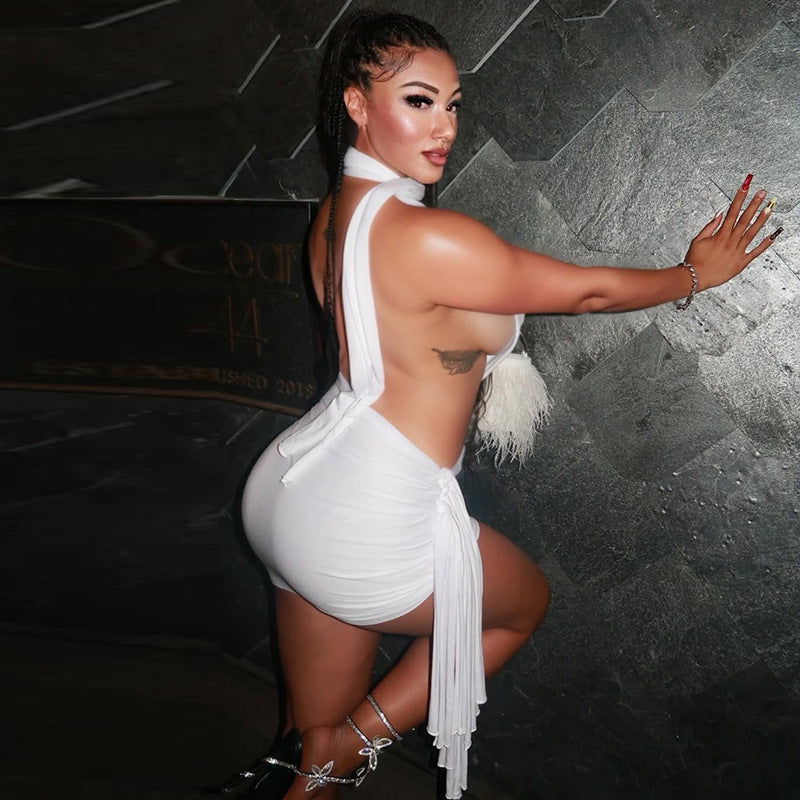 Elevate your evening look with this stunning patchwork bodycon dress. Featuring a backless design, lace-up detailing, and asymmetrical pleated accents, this piece combines modern style with timeless elegance. Crafted from a premium polyester and spandex blend, the fabric offers exceptional stretch and durability while maintaining comfort throughout the night. Perfect for cocktails, proms, galas, or special occasions, this dress delivers a sophisticated silhouette that turns heads. The versatile solid colorway pairs effortlessly with your favorite accessories, making it an essential addition to any evening wardrobe.